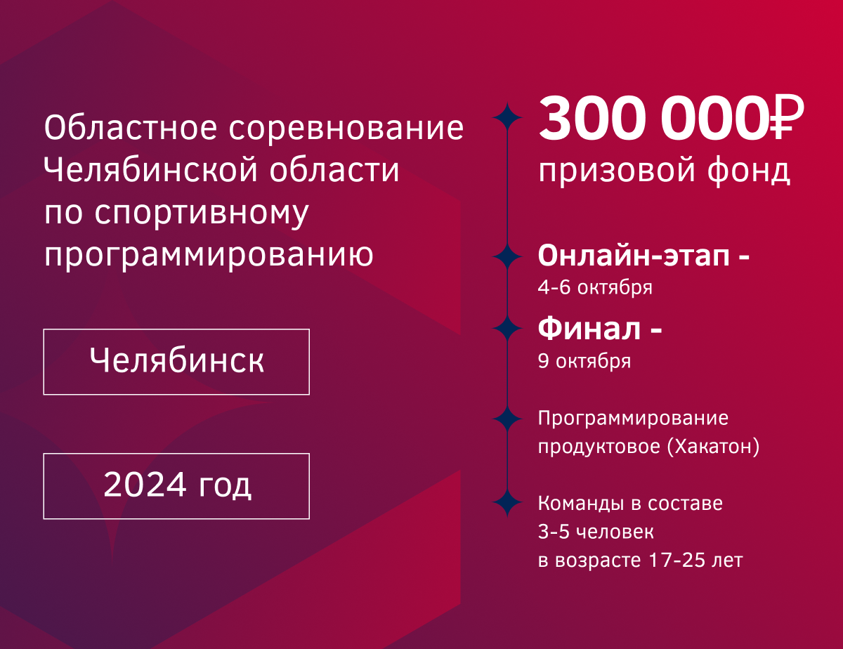 Минпромторгом России была поддержана инициатива. АО «РТ-Техприемка» Госкорпорации «Ростех» и Федерации спортивного программирования России (ФСП) по проведению регионального этапа конкурса по спортивному программированию под эгидой регионального этапа конференции по применению новых промышленных технологий «Код индустрии», запланированной в период 8−10 октября 2024 г. в Челябинске.